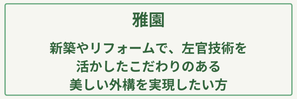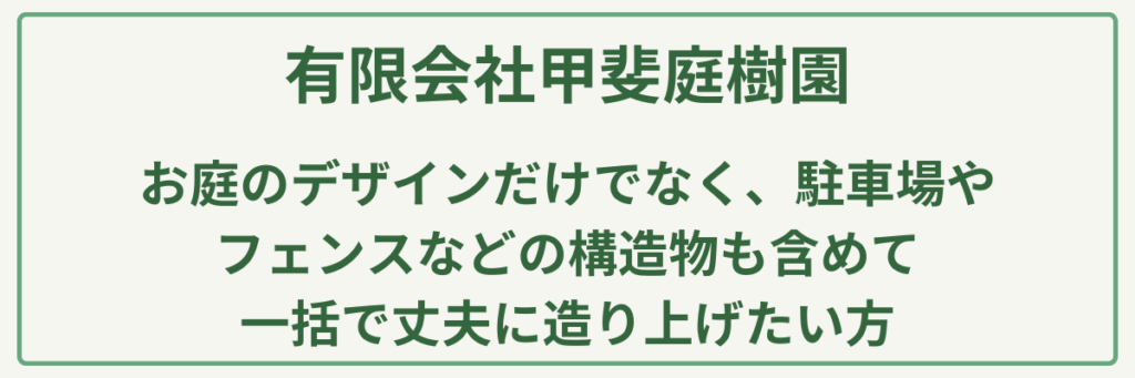 ポイント現代のライフスタイルに寄り添う、ハイセンスな造園・デザイン提案力/植物を主役にした、情緒豊かで質の高いエクステリア施工実績/SNS等でも高く評価される、こだわり抜かれた空間構成/駐車場12台完備で、落ち着いてじっくり相談できる店舗環境/延岡を中心に、県北エリアの住まいを彩る地域密着のクリエイティブ集団