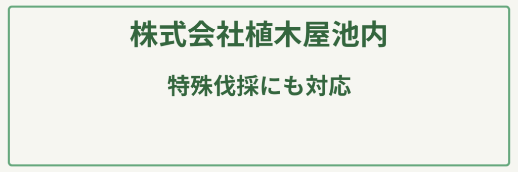 | 対応サービス | 剪定・刈込み、消毒、伐採・抜根(特殊伐採・大木対応)、草刈り・芝生管理、外構工事・造成 |