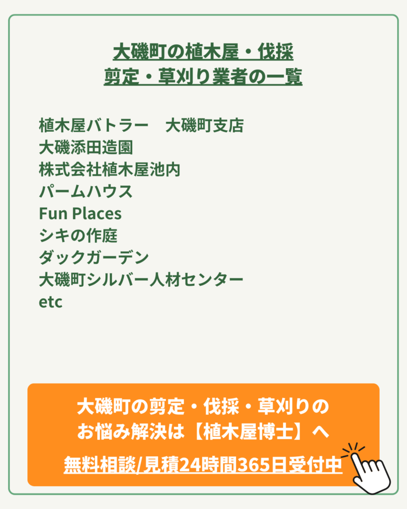 植木屋(剪定・伐採・草刈り業者)選びでお悩みの方は、是非この機会に植木屋博士の無料相談・無料見積をご活用ください。