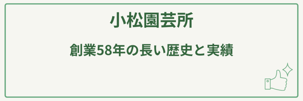 小松園芸所は、創業58年の長い歴史と実績に裏打ちされた確かな技術、そして「山水に得失無し、得失は人の心にあり」という禅の教えを基にしたお客様の思いに寄り添う感性が最大の強みです。