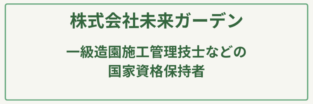 | ポイント | 長年のキャリアを持つ職人在籍/1級造園施工管理技士在籍/2級造園施工管理技士在籍/1級造園技能士在籍/街路樹剪定士在籍/災害協力会加盟/環境リサイクルへの取り組み実施 |