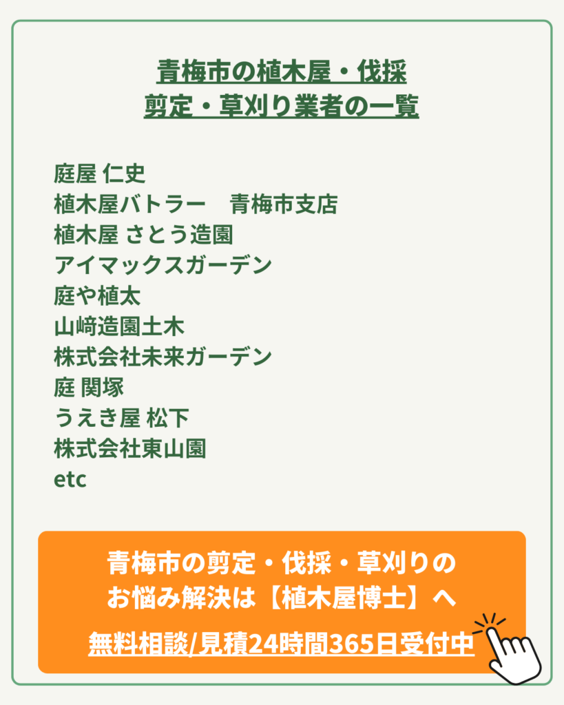 今回は、そんなお悩みを抱えるあなたに向けて、植木屋博士運営が、青梅市の植木屋さん達をご紹介します。