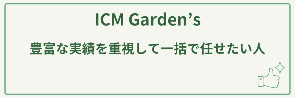 ICM Garden’sは、創業から25年間で累積1万5千件という確かな施工実績と、エクステリア専門のショールームで実際の素材を見て触れてデザインを検討できる提案体制が最大の強みです。