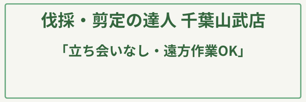 | ポイント | 最短当日駆けつけ可能/賠償責任保険加入済み/立ち会い不要の遠方作業対応/庭木1本から施工可能/竹林処分や不用品撤去まで対応/地域密着の誠実な提案 |