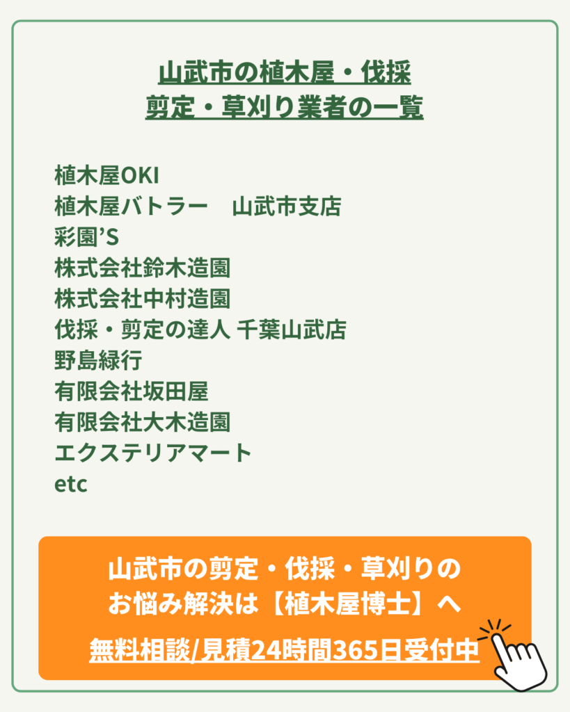 今回は、そんなお悩みを抱えるあなたに向けて、植木屋バトラー運営が、山武市の植木屋さん達をご紹介します。