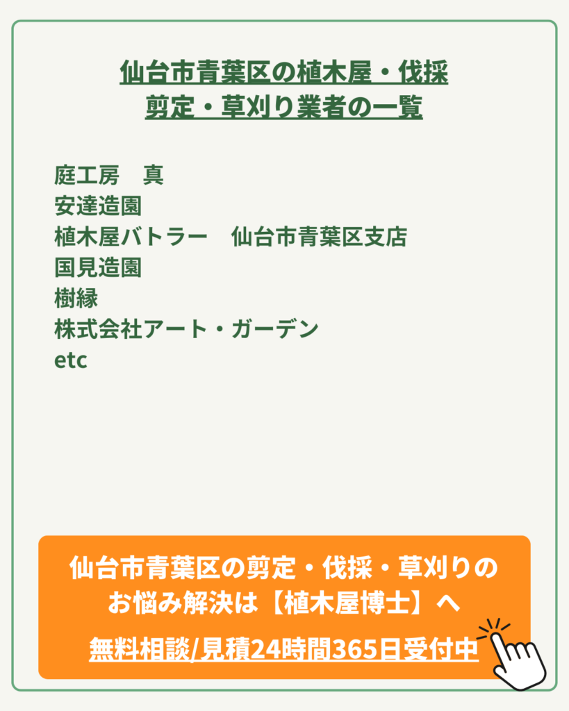 今回は、そんなお悩みを抱えるあなたに向けて、植木屋博士が、仙台市青葉区の植木屋さん達をご紹介します。
