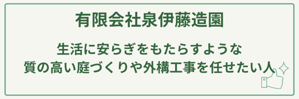 有限会社泉伊藤造園は、創業以来培ってきた確かな技術と経験に基づき、お客様に「癒しのある庭」を提供する造園・外構の総合的な施工力が最大の強みです。