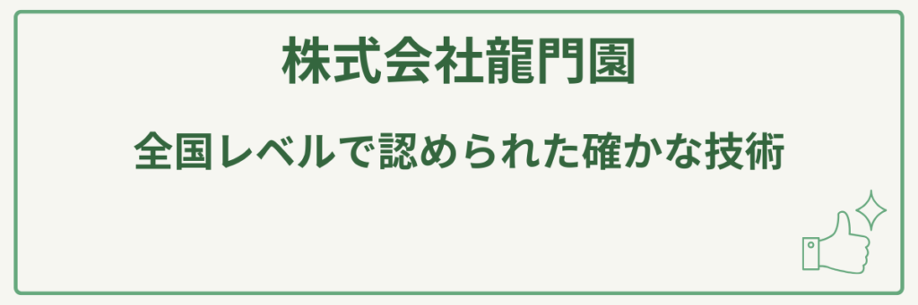 株式会社龍門園は、創業30年の実績と、全国都市緑化フェアで国土交通大臣賞を複数回受賞している確かな技術力と高いデザイン性が最大の強みです。