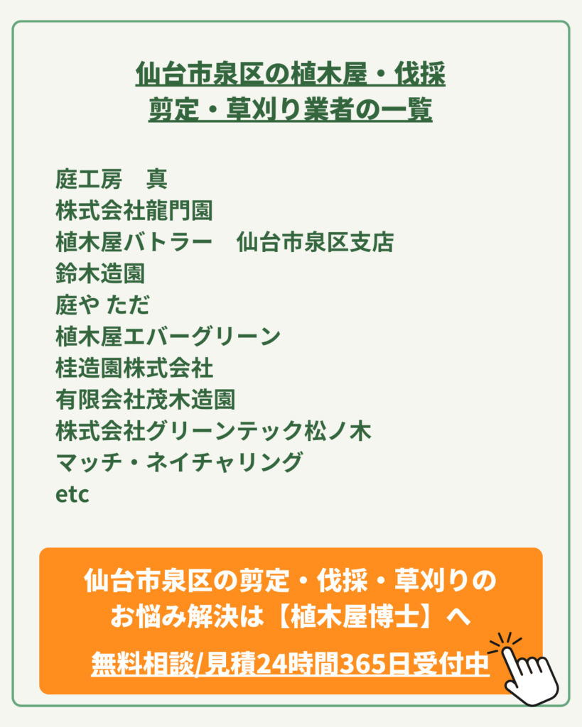 仙台市泉区で植木屋さんを探しているなら、近くのエリアの植木屋さんもチェックしておきたいですよね。