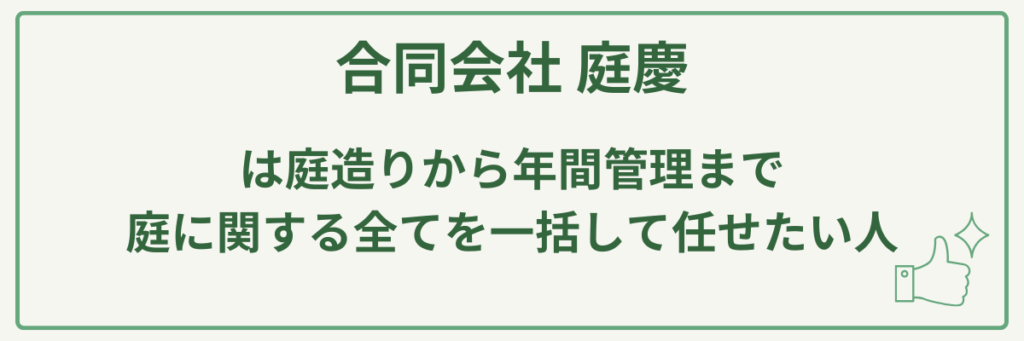 合同会社 庭慶(にわけい)は、お客様の要望やイメージ、ご予算に親身に寄り添い、「理想の庭造り」を提案する姿勢と、造園・庭造り、庭のお手入れ全般に対応できる幅広い業務内容が最大の強みです。