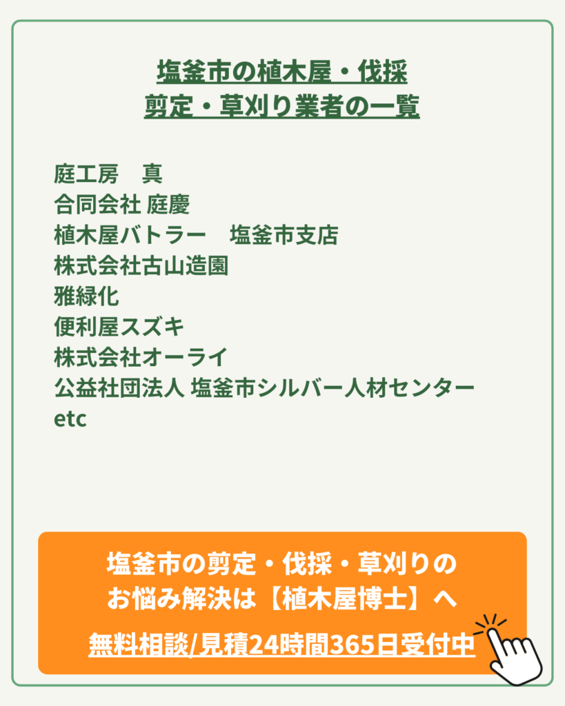 塩釜市で植木屋さんを探しているなら、近くのエリアの植木屋さんもチェックしておきたいですよね。