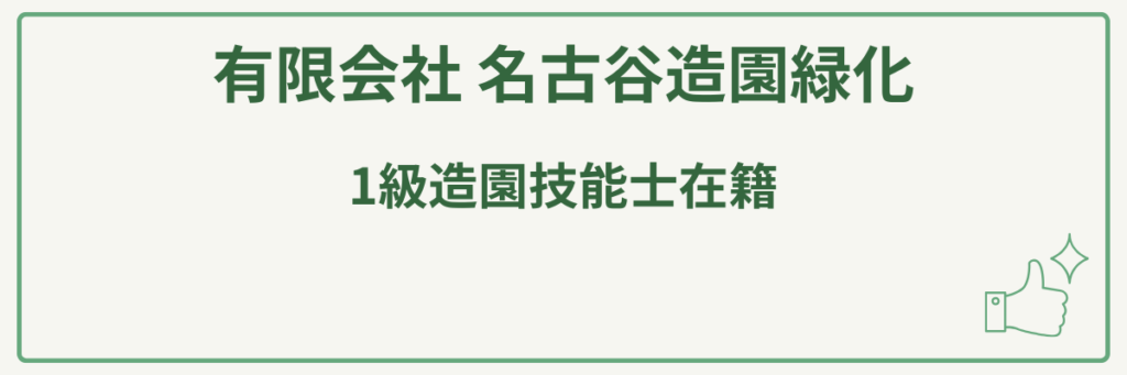 | ポイント | 無料見積・無料相談・1級造園技能士、2級造園技能士、2級造園施工管理技士、2級土木施工管理技士、職業訓練指導員 |