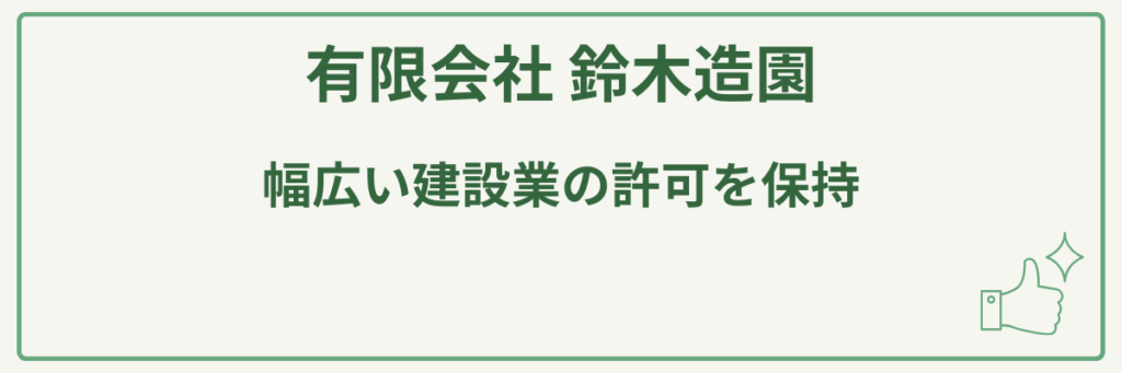 | 対応サービス | 造園工事業、石工事業、土木工事業、タイル・レンガブロック工事業、とび工事業 |