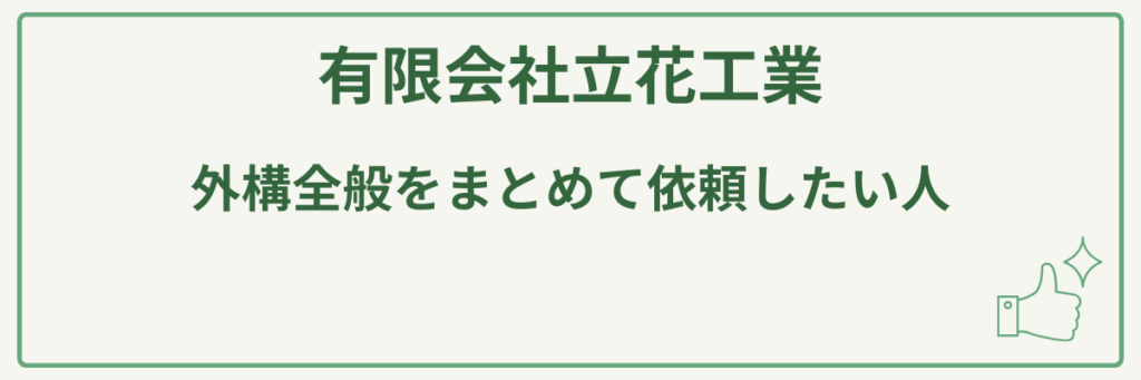 そのため、「庭木の植栽や造園と合わせて、カーポート、フェンス、テラスなどの外構全般をまとめて依頼したい人」や「福島県内で費用を抑えつつ、質の高い総合的な庭・外構リフォームを実現したい人」におすすめです。