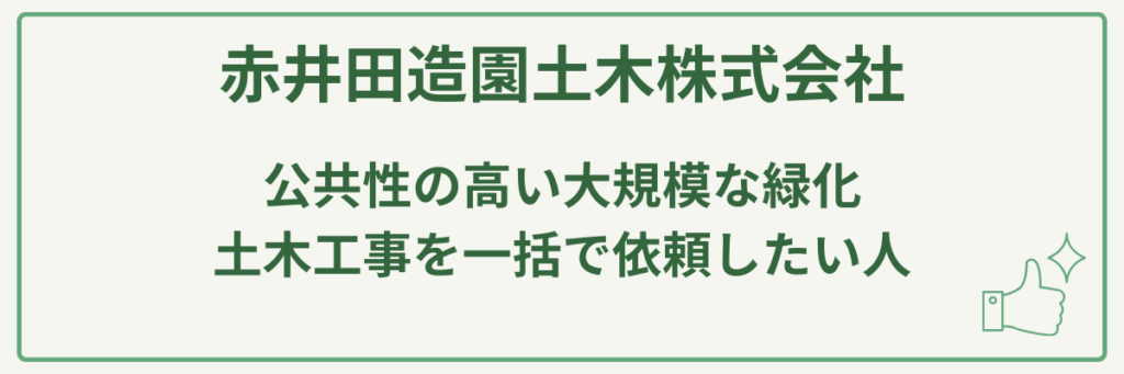そのため、「公共性の高い大規模な緑化・土木工事を一括で依頼したい人」や「高い専門性と環境に配慮した技術(在来種利用など)を求める人」におすすめです。