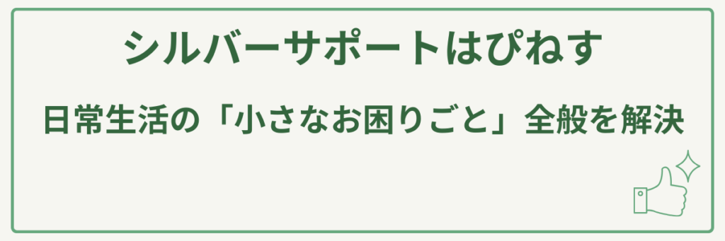 シルバーサポートはぴねすは、介護保険ではカバーできない日常生活の「小さなお困りごと」全般を解決できる総合サポート力が最大の強みです。