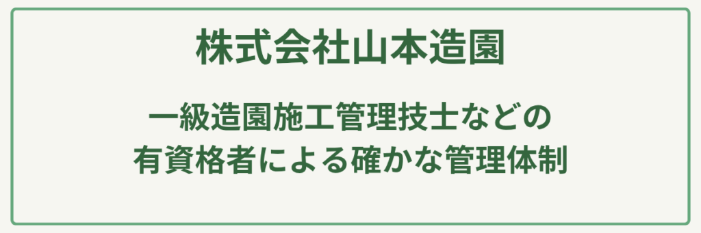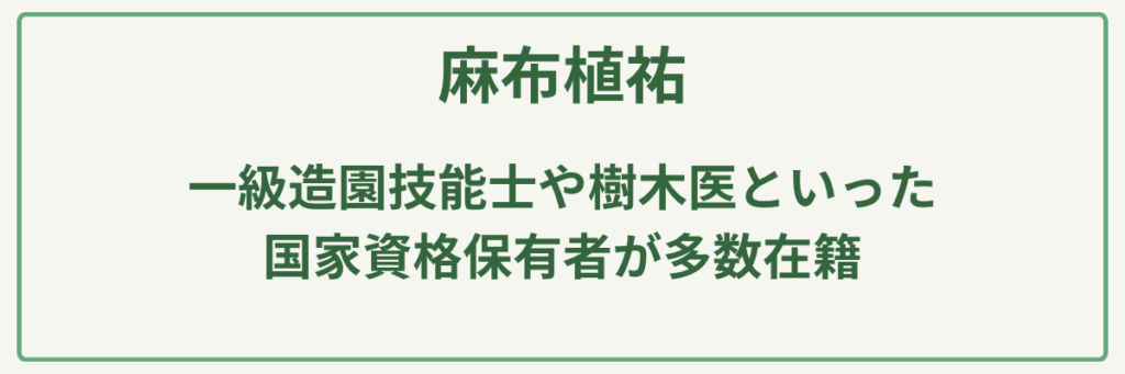 ポイント創業100年以上/一級造園技能士在籍/一級造園施工管理技士在籍/樹木医在籍/東京都知事許可(造園、土木、とび・土工)/港区指定業者/豊富な公共・民間施工実績