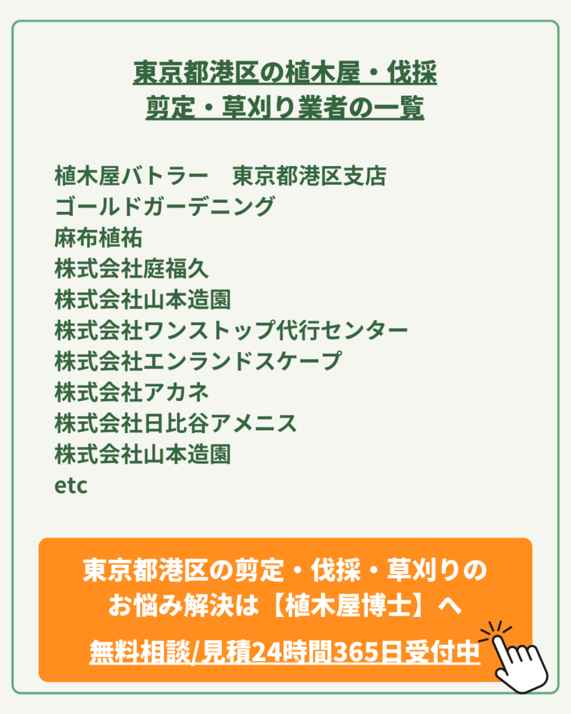 今回は、そんなお悩みを抱えるあなたに向けて、植木屋博士運営が、東京都港区の植木屋さん達をご紹介します。