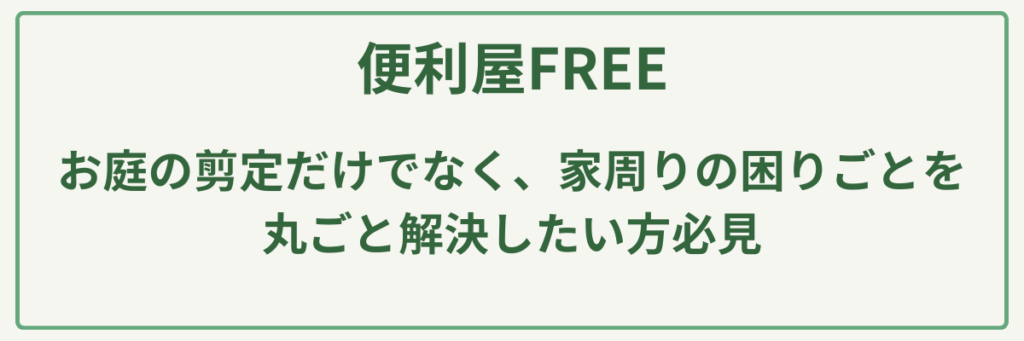 | 対応サービス | 剪定・伐採・草刈り・不用品のリサイクル・お掃除・お引越し手伝い・家具移動 |