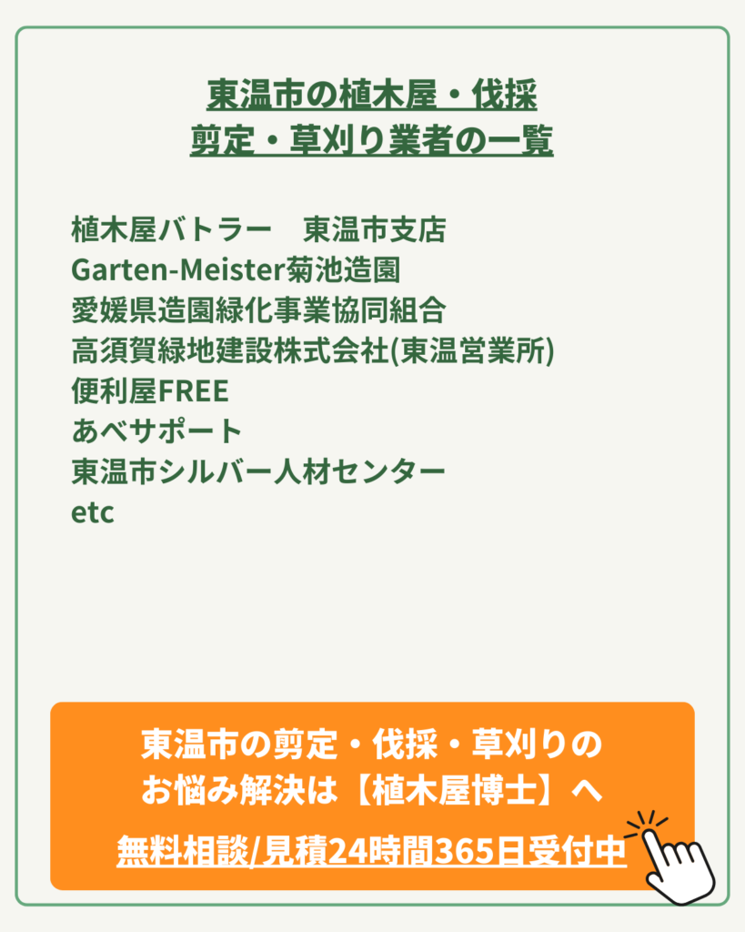 今回は、そんなお悩みを抱えるあなたに向けて、植木屋博士運営が、東温市の植木屋さん達をご紹介します。