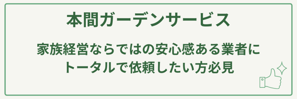 このため、追加料金の心配なく、親身で丁寧な対応を求める方や、庭木の手入れから外構デザインまで、家族経営ならではの安心感ある業者にトータルで依頼したい方におすすめの植木屋です。