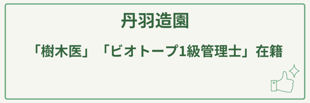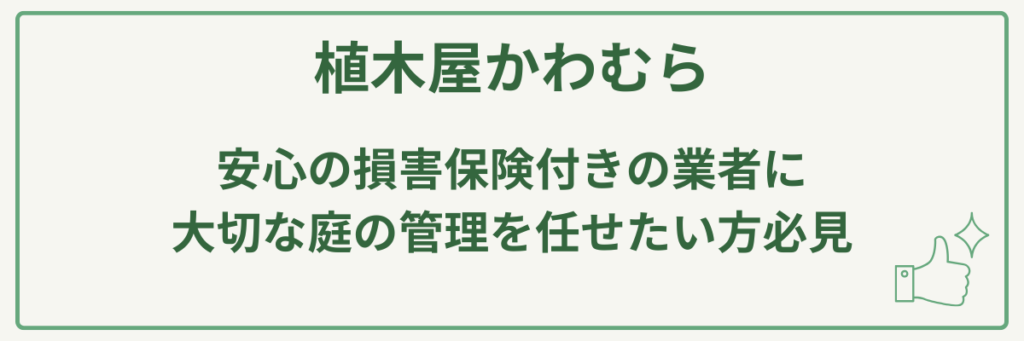 | ポイント | 無料見積・庭木1本からの手入れに対応・あいおいニッセイ同和損保に加入済み |