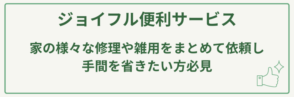 ジョイフル便利サービスは、草刈り・伐採・剪定といった庭の手入れから、アンテナ工事、エアコン工事、不用品片付け、小動物対策など、家庭内のあらゆる「お困りごと」を一挙に解決できることが最大の強みです。