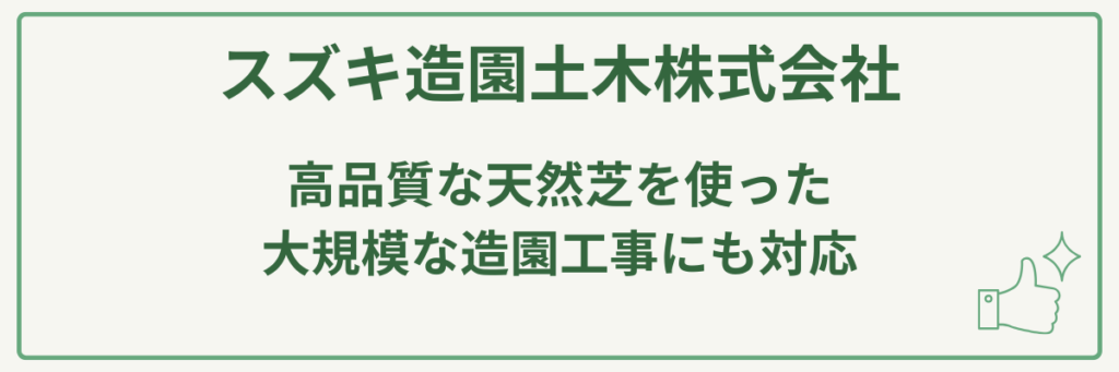 | 対応サービス | 造園工事、芝張り、芝刈り、樹木植栽、庭園造り、芝・樹木の手入れ、除草、害虫駆除、芝の販売 |