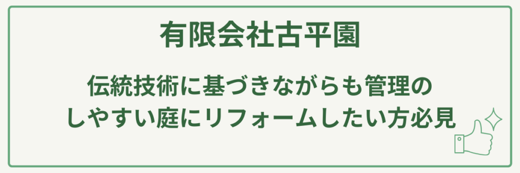 | 対応サービス | 庭づくり、外構、植栽管理アドバイス、メンテナンス・手入れに関するアドバイス |