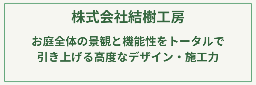 埼玉県戸田市を拠点に活動する「株式会社結樹工房」は、**「人と樹木が心地よく共存するための提案力と、一級造園技能士による妥協のない手仕事」を兼ね備えた、庭造りの真摯なパートナーです。最大の強みは、伝統的な剪定技術をベースにしながら、ウッドデッキやフェンスといった外構工事、さらには夜のお庭を彩るライティング計画まで、「お庭全体の景観と機能性をトータルで引き上げる高度なデザイン・施工力」**にあります。