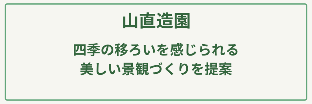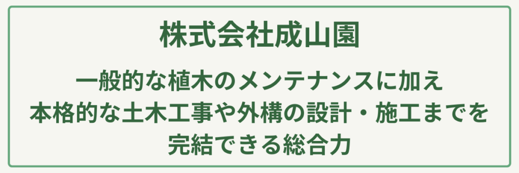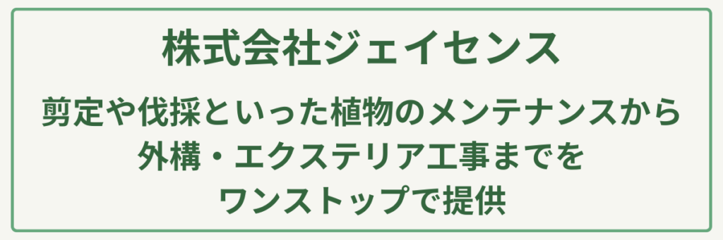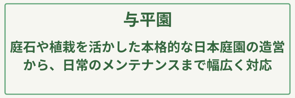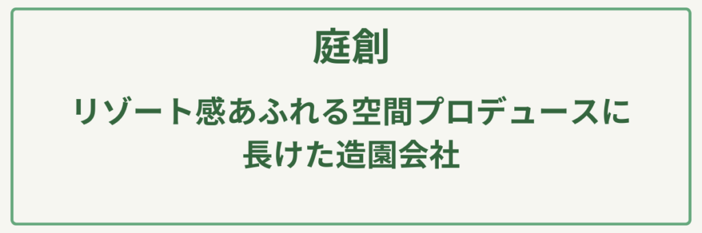 | 対応サービス | 造園工事、外構・エクステリア、植栽管理、庭づくり |