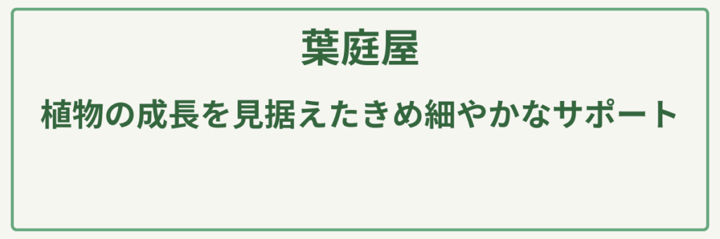 また、単なる販売店にとどまらず、専門の職人による剪定や造園、お庭のお手入れまで一貫して依頼できるのも魅力です。長年培われた確かな技術で、樹木の健康状態や美しさを最大限に引き出してくれます。**「庭木選びから日々のメンテナンスまで、信頼できるプロに丸ごと相談したい」**という方に、ぜひ選んでいただきたい一軒です。