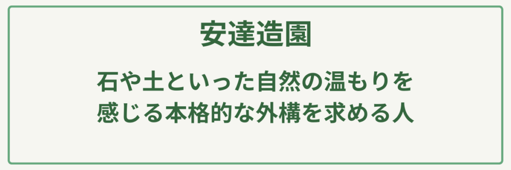 確かな知識に基づいた自然との調和という強みがあるため、「画一的な外構ではなく、生命力あふれる豊かな庭を育てたい」と願う方や、「都会にいながら自然の潤いを感じて暮らしたい」と考える人に特におすすめの植木屋です。