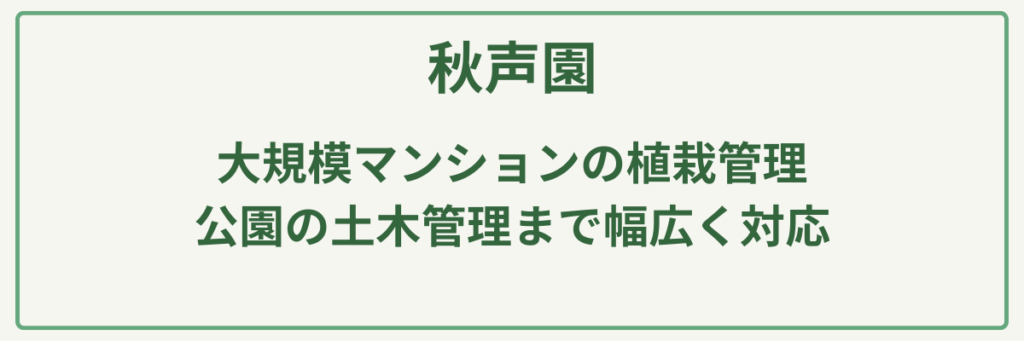 | 対応サービス | 剪定、庭づくり、造園、土木工事、土壌改良、マンション植栽管理、清掃業務 |