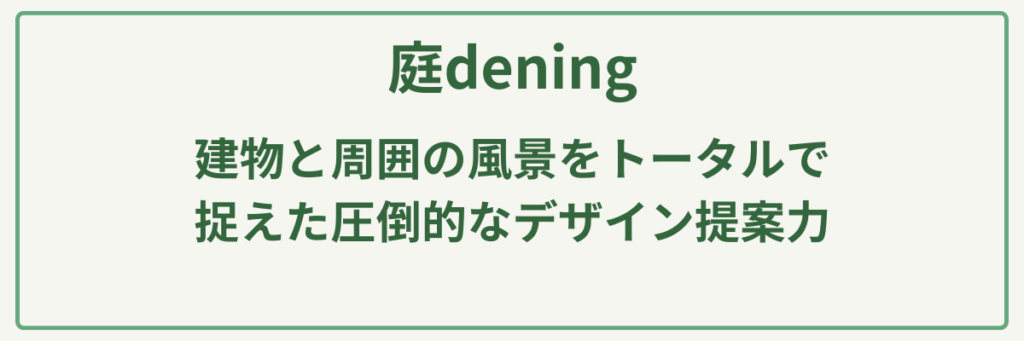 庭deningは、神奈川県横須賀市を拠点に、建築家がプロデュースする「世界に一つだけの庭」を形にするエクステリアと造園の専門店です。最大の強みは、代表の建築家・小山健太郎氏による、建物と周囲の風景をトータルで捉えた圧倒的なデザイン提案力にあります。20年以上のキャリアと3,000件を超える設計実績に裏打ちされた技術で、単なる植栽に留まらず、住空間そのものを格上げするラグジュアリーな庭づくりを得意としています。