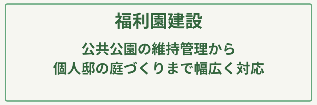 | 対応サービス | 剪定・樹木管理・花壇管理(デザイン・土づくり)・除草・清掃・公園維持管理・各種工事 |