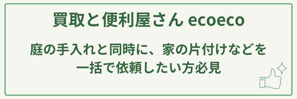 このため、庭の手入れと同時に、実家の片付けや遺品整理、不用品の買取・処分までを、有資格者のいる安心な業者に一括で依頼し、費用を抑えたい方におすすめの便利屋です。