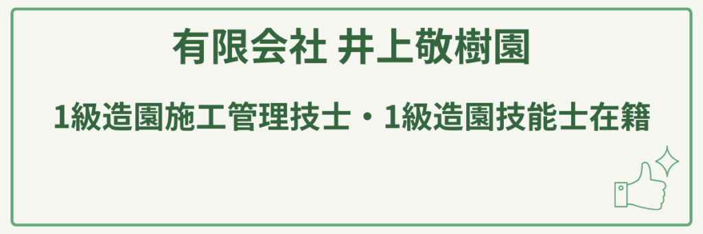 | ポイント | 無料見積・無料相談・1級造園施工管理技士、1級造園技能士、基幹技能者、2級土木管理士 |