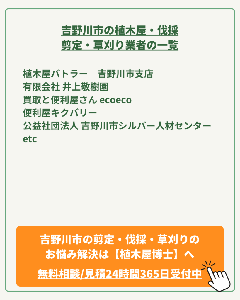 植木屋(剪定・伐採・草刈り業者)選びでお悩みの方は、是非この機会に植木屋博士の無料相談・無料見積をご活用ください。