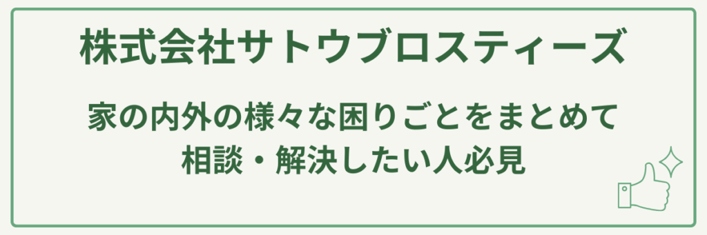株式会社サトウブロスティーズは、便利屋として22年目(執筆時点)を迎える豊富な経験と実績を持ち、由布市、大分市、別府市を中心に、暮らしの「お困りごと」全般に対応できることが最大の強みです。