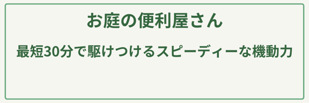 地域の職人と独自のネットワークで提携しており、庭をオシャレに作り変える外構デザインや、重たい家具の移動、買い物代行といった便利屋サービスまで、暮らしのあらゆるニーズに柔軟に応える姿勢が多くの信頼を集めています。そのため、「庭の手入れだけでなく、空き家の整理や家屋の修繕もまとめて相談したい」という方や、「地域に密着した何でも頼めるプロに、一括でお任せしたい」と願う人におすすめの相談先です。