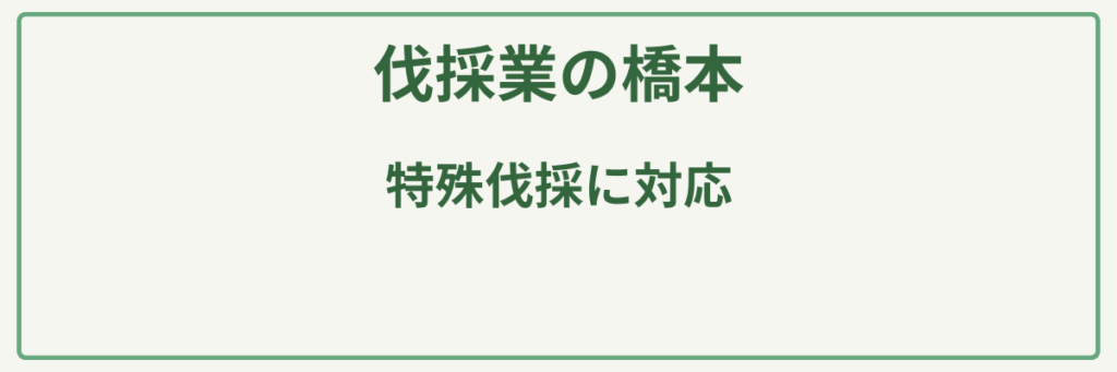 | 対応サービス | 伐採・抜根・枝打ち・枝詰め・草刈り・解体工事 |