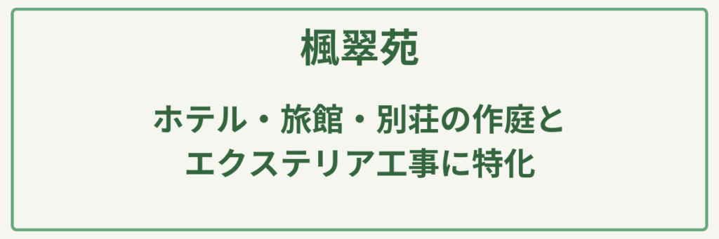 楓翠苑(ふすいえん)は、鎌倉、熱海、箱根、軽井沢といった国内屈指の別荘地やリゾート地において、ホテル・旅館・別荘の作庭とエクステリア工事に特化した実力派の庭師集団です。その土地が持つ固有の風土や景観を深く理解し、建物と庭が互いを引き立て合う**「調和する庭」や、非日常を演出する「癒しの庭」**を具現化する技術に長けています。