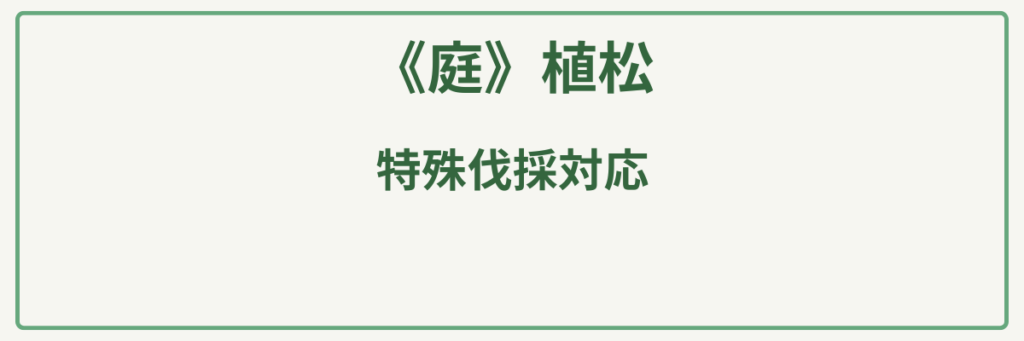 | 対応サービス | 伐採・枝落とし・植林・造園工事・剪定・植栽・雑草の刈り払い・防除(消毒) |