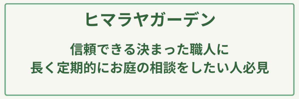 ヒマラヤガーデンは、湘南・西湘・静岡エリアを中心に活動する、業界歴25年以上の店長と妻が営む「夫婦の植木屋」です。見積もりから施工まで一貫して自社で対応しており、毎回同じ職人がお庭の状態を把握して丁寧に作業を行うため、大手にはない安心感と一貫性があります。