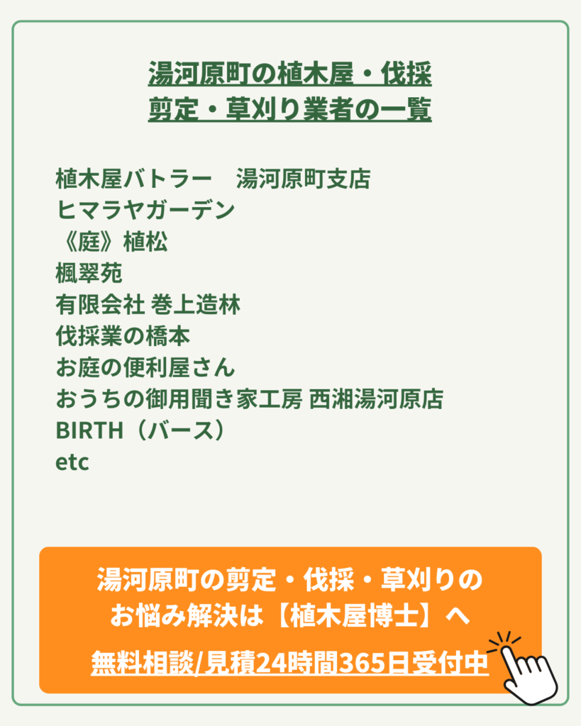 植木屋(剪定・伐採・草刈り業者)選びでお悩みの方は、是非この機会に植木屋博士の無料相談・無料見積をご活用ください。