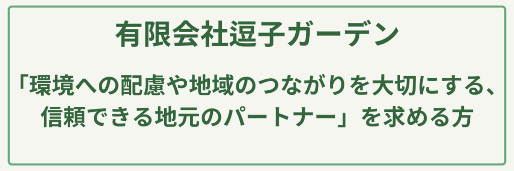 地域の風土を熟知した専門知識に基づき、樹木本来の健康を維持する剪定や外構工事を行うため、「自然の生態系を大切にしながら、長く愛せる美しい庭を作りたい」と願う人に特におすすめです。また、定期的にマルシェを開催するなど地域交流も盛んで、「環境への配慮や地域のつながりを大切にする、信頼できる地元のパートナー」を求める方にとって、これ以上ない相談先となるでしょう。